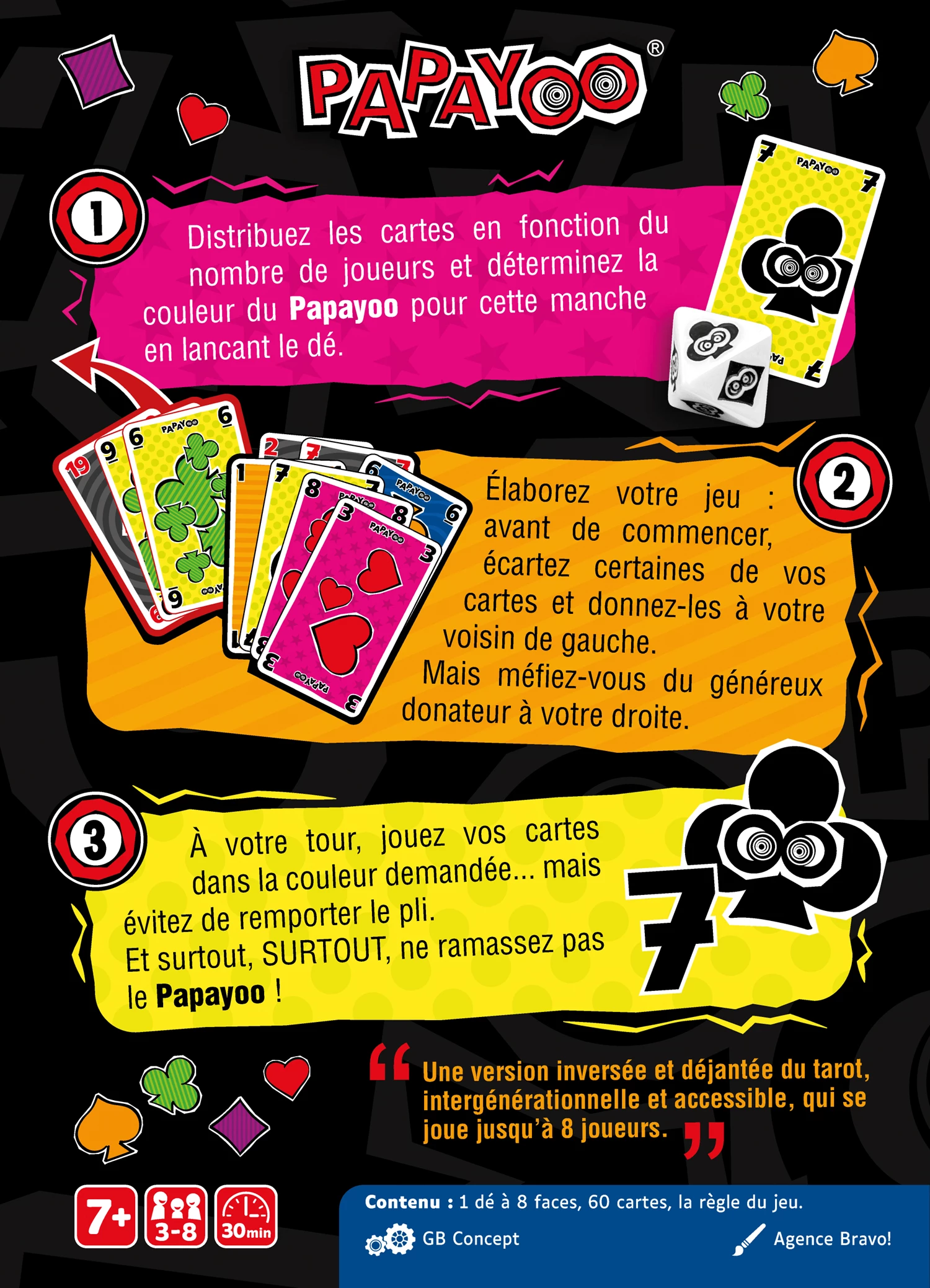 Olé Guacamolé est un jeu d’apéro, simple et rapide, dans lequel vous devez trouver des associations de mots sans utiliser des termes qui possèdent l’une des lettres présentes au centre de la table.