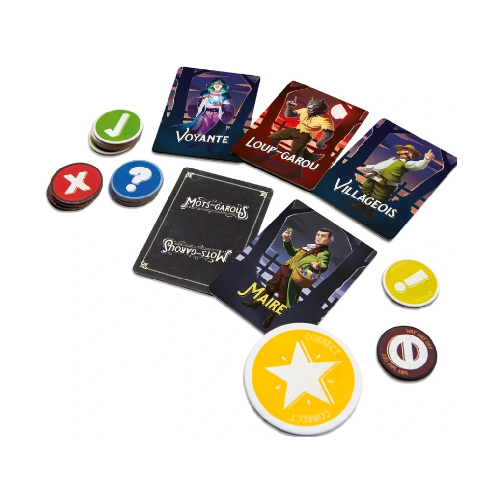 Mots-Garous est un jeu d’ambiance et de déduction verbale dans lequel les joueurs doivent identifier les loups-garous cachés grâce à des associations de mots… sans se trahir.